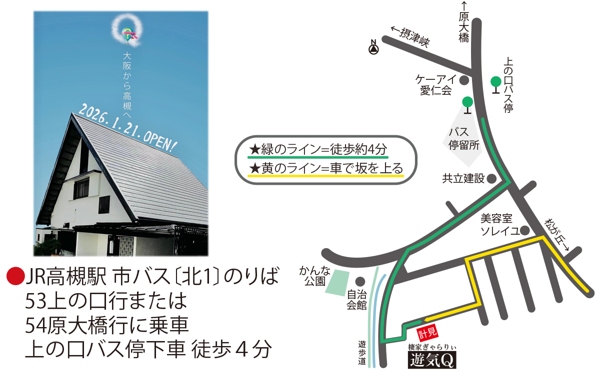 高槻市摂津峡の近辺に在る住宅地の『棲家ぎゃらりぃ遊気Q』です。